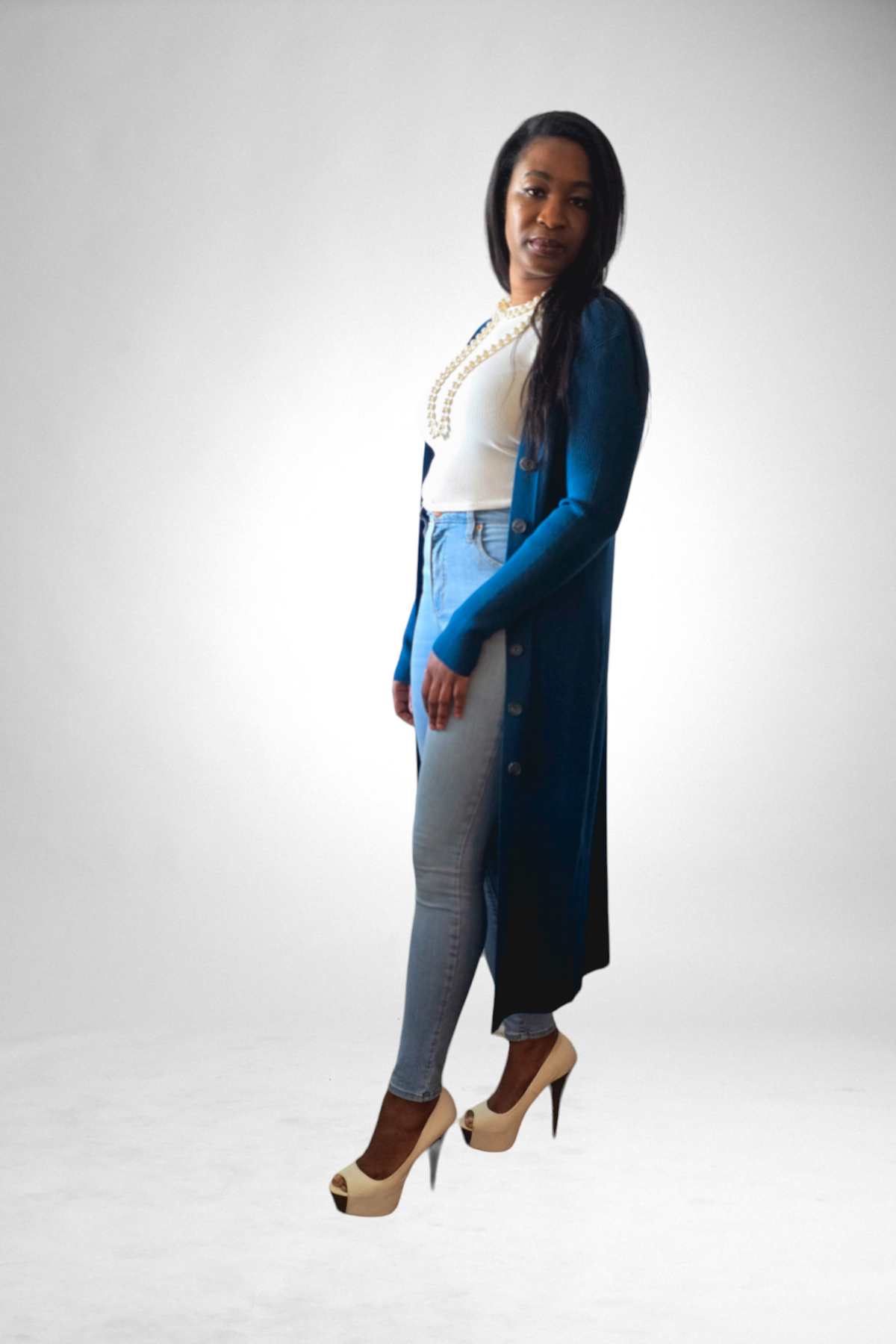 CASCADE LONG CARDIGAN SWEATER in peacock